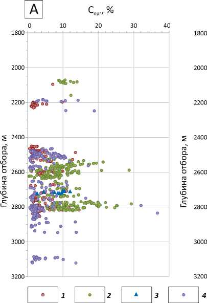 Рис. 5. Изменение с глубиной аналитических данных ОВ