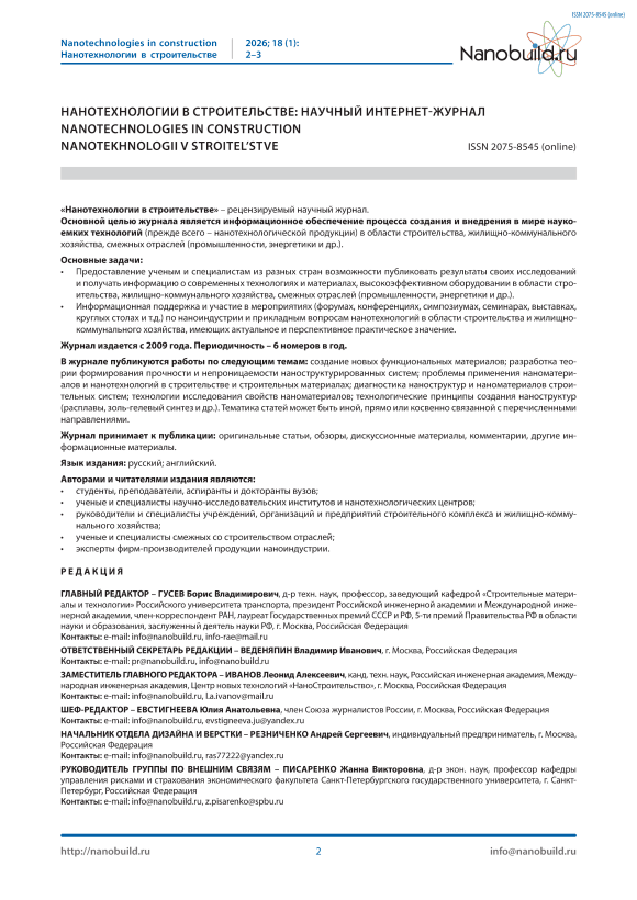 Журнал: Нанотехнологии в строительстве: научный интернет-журнал @nanobuild