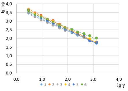 lg ηэф =-0,6924 lg γ + 4,1657 |