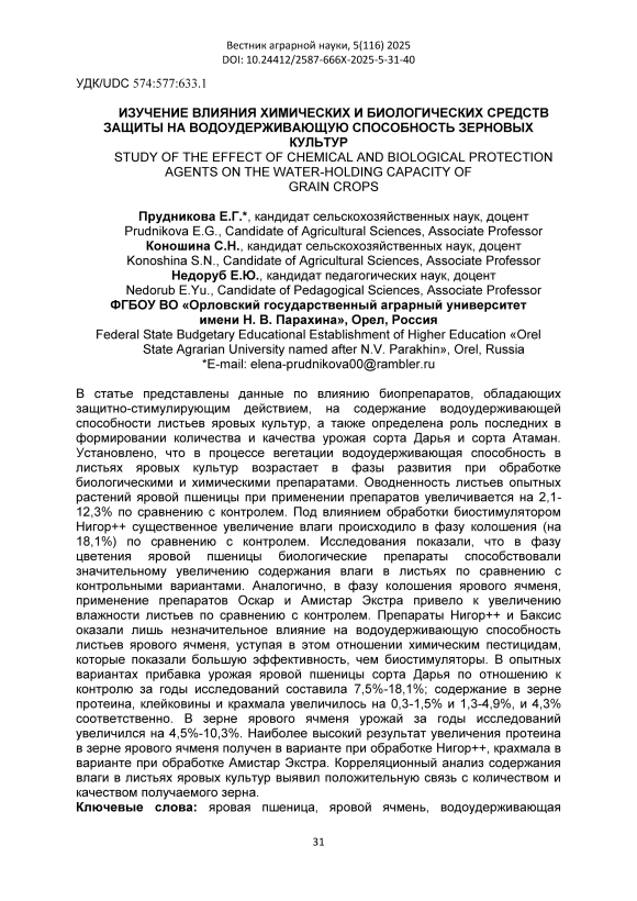 IDR: 147253314 | УДК: 574:577:633.1 | DOI: 10.24412/2587-666X-2025-5-31-40