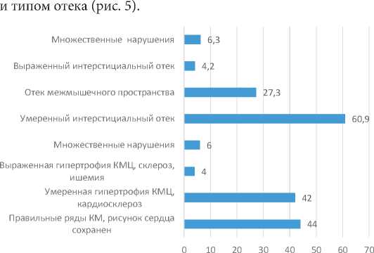 Рис. 4. Типы отеков сердечной ткани, по результатам гистологического исследования