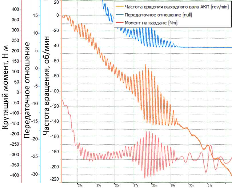 Рис. 3. Экспериментальное воспроизведение рассматриваемого явления при трогании на задней передаче:
