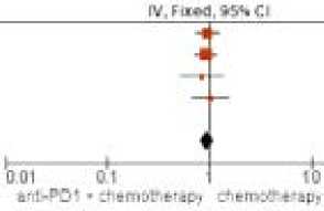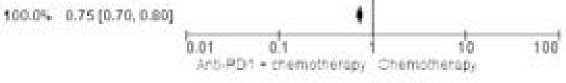 Figure 6. Forest plot meta-analysis of a study comparing OS in all patients: chemotherapy or chemotherapy and anti-PD1 antibodies