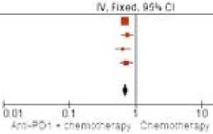 Рисунок 6. Форест-график мета-анализа исследований, в которых проводилось сравнение ОВ на всей популяции пациентов: химиотерапии или комбинации химиотерапии и анти-PD1 антител