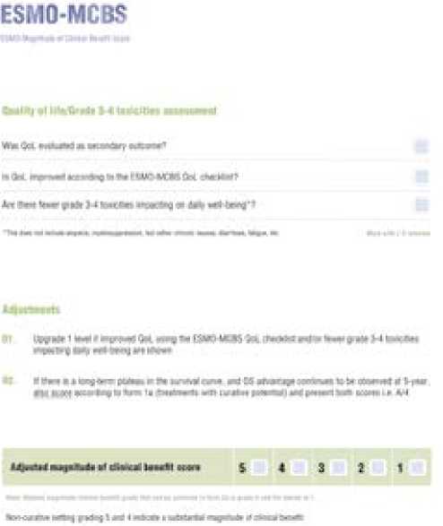 Figure 2. Form 2a for the assessment of clinical benefit according to the ESMO-MCBS scale