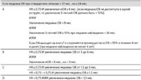 Основной критерий эффективности — ОВ. Дополнительный оценочный фактор — качество жизни.