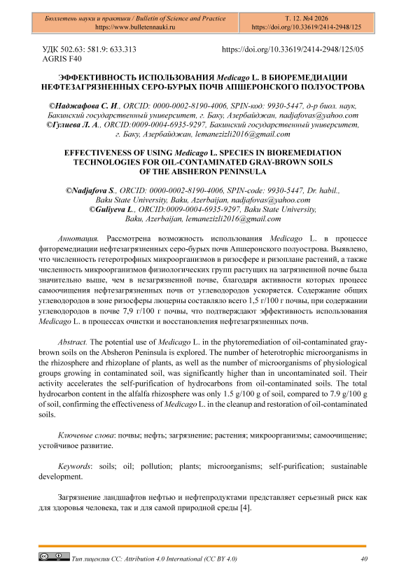 Эффективность использования Medicago L. в биоремедиации нефтезагрязненных серо-бурых почв Апшеронского полуострова
