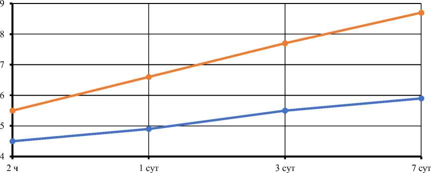 Добавление хлорида кальция CaCl 2 в виде коллоидного раствора в строительный гипс, особенно в микродозировках в количестве 0,2 % от массы гипса, является высокоэффективным методом повышения его прочности (табл. 3). Проведенные исследования показали значительный прирост прочности на сжатие гипсового камня: на 34 % после 2 ч твердения, на 39 - 60 % после 1 - 7 сут твердения. Модифицированный гипсовый камень достиг прочность при сжатии 7,8 МПа через 1 сут твердения, в то время как исходный гипс достиг те же прочностные показатели через 3 сут твердения. Добавка особенно эффективно увеличивала прочностные показатели при малых дозировках – 0,2 - 0,4 %, с увеличением количества добавки прирост прочности снижается – в 1,17–1,23 раза по сравнению с исходным гипсом в 7 сут твердения. Оптимальная дозировка добавки для всех исследуемых солей - 0,2–0,4 %, что в пересчете на сухую соль составляет 0,004–0,008 % от массы гипса. При разбавлении исходной концентрации соли в виде 2%-ного раствора в 142–285 раз привело к значительному увеличению дисперсности коллоидной системы, уменьшив размер частиц в 2,5–3 раза. Образованные таким образом коллоидные частицы обладали высокой поверхностной энергией, что делало их активными центрами кристаллизации для гидратирующихся вяжущих веществ.