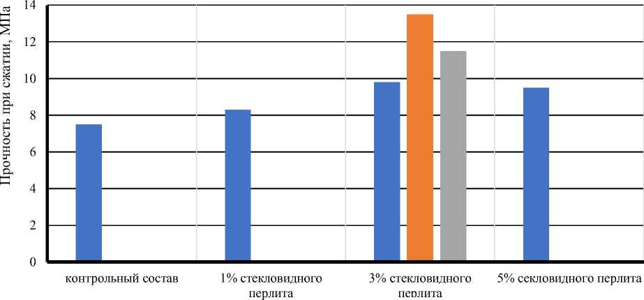 Предел прочности при сжатии с различным содержанием добавки, % от массы гипса, МПа |