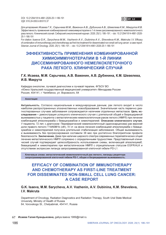 IDR: 140314359 | УДК: 616.24-006.6-08:615.37 | DOI: 10.21294/1814-4861-2026-25-1-186-191
