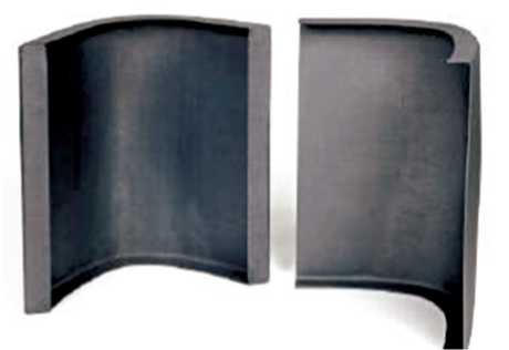 При больших скоростях повышенные теплоэрозионные нагрузки испытывает не только проточный тракт, но и элементы конструкции летательного аппарата. К ним в первую очередь относятся передние кромки крыльев и киля. Их работоспособность обеспечивается применением УУКМ и УККМ. В качестве примера на рис. 12 приведён общий вид монолитных теплозащитных элементов кромки крыльев многоразовых космических летательных аппаратов (КА) типа X-38 из ККМ системы Cf /SiC [16].