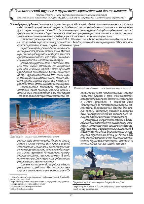 Рубрика: Экологический туризм и туристско-краеведческая деятельность