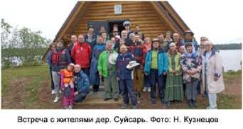 12-00. В часовню д. Суйсарь протоиерею Леониду (Леонтюку) и приходу, участниками была передана в дар икона одного из главных онежских святых – Преподобного Ионы Клименецкого. Местные жители после службы собрали по этому случаю чаепитие и угостили участников чаем с калитками и местной «деревенской пиццей».