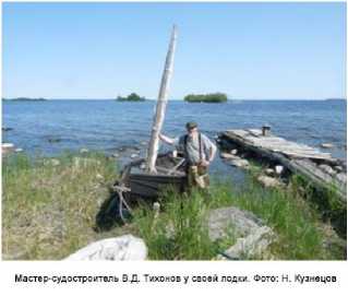 Его дед в 1914 г. построил дом, где сейчас и живут мастер с женой, Владимир Дмитриевич – профессиональный судостроитель. Сразу после армии поступил на судостроительный завод «Авангард», работал на Петрозаводской судоверфи, на верфях «Варяг» и «Полярный Одиссей». Имеет большой опыт управления спортивными яхтами, участвовал в соревнованиях и Онежской регате. После выхода на пенсию стал шить лодки в родной деревне и помогать её сохранению и возрождению, В.Д. Тихонов многократный участник и призёр Фестиваля «Кижская регата».