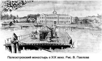 Из Петербурга и из Петрозаводска проходил путь паломничества на Соловки, в XVIII в. на соймах, а в XIX веке – на пароходах, паломники делали остановку на Пальем острове. Для них был построен двухэтажный каменный корпус, в котором кроме келий была церковь – сбор пожертвований приносил постоянный доход монастырю. В 1919 году земля монастыря была передана коммуне и жителям острова, в 1928 году монастырь был разрушен, храмы закрыты, была создана колония для малолетних преступников. К концу XX в. сохранились стены главного корпуса с домовой церковью, некоторые здания и часть ограды.