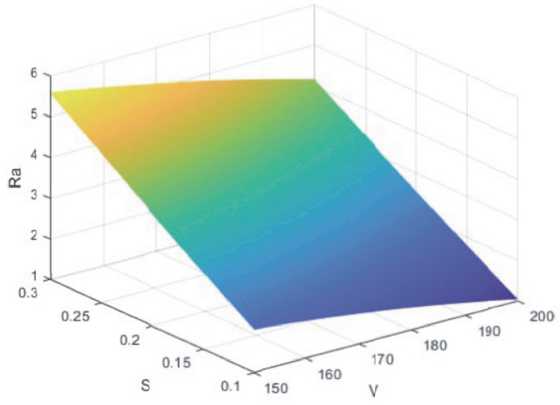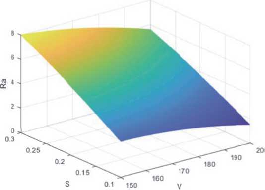 t=0.2 мм, Ra=5.3·S2-0.04325·S·V+22.09·S-0.0001552·V2+0.03848·V-1.835;