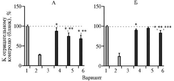 Измерения проводили в трех повторностях. Статистическую обработку осуществляли в программе GraphPadPrism version 8.0.2 software («GraphPad Software», США). Данные представлены как средние значения ( M) и стандартные отклонения (±SD). Для анализа значимости различий применялся однофакторный дисперсионный анализ (ANOVA) с последующим тестом множественных сравнений Тьюки для групповых средних. Результаты считали статистически значимыми при p < 0,05.