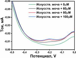 Раствор искусственной мочи для исследования реальных образцов был приготовлен из смеси мочевины 8 г/л, NaCl 7,5 г/л, KCl 4,5 г/л и Na 3 PO 4 4,5 г/л.