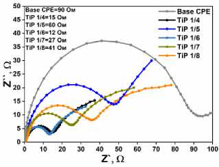 г) ЭИС для УПЭ модифицированных TiP 1/8–1/4