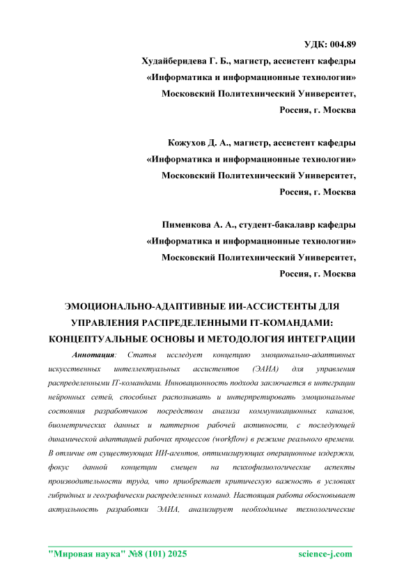 Эмоционально-адаптивные ИИ-ассистенты для управления распределенными IT-командами: концептуальные основы и методология интеграции
