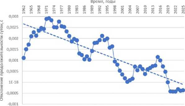 Отклонение продолжительности суток, с