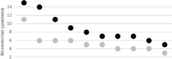 Расчеты выполнены автором по данным Colorado State University [3], International Earth Rotation and Reference Systems Service [4] и The National Hurricane Center [5].