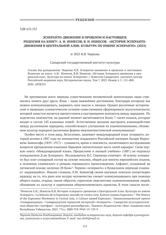 Эсператно-движение в прошлом и настоящем. Рецензия на книгу: А.И. Ионесов, В.И. Ионесов. «История Эсперанто-движения в ценральной азии. Культура по имени Эсператно» (2025)