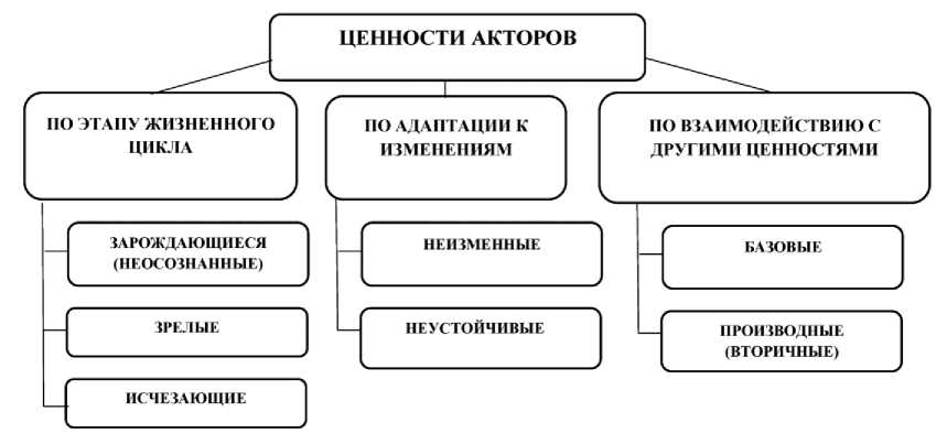 Следующим этапом изучения эволюционной типологии ценностного подхода стало выделение типов ценностей акторов инновационной политики, которое мы представили схематично на рис. 2.