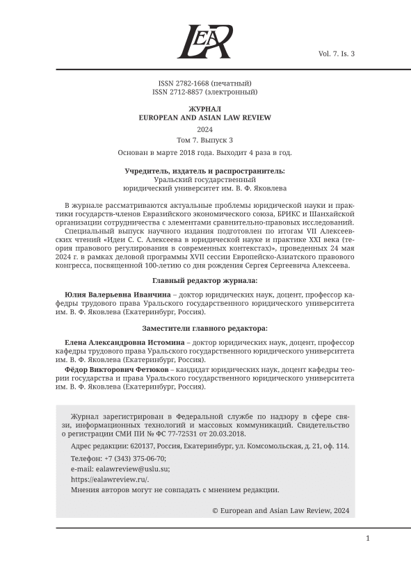 Статьи выпуска 7 (3), 2024 EUROPEAN AND ASIAN LAW REVIEW