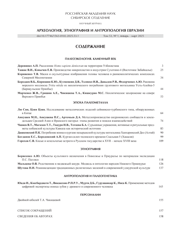 Содержание выпуска 1 т.53, 2025 Археология, этнография и антропология Евразии