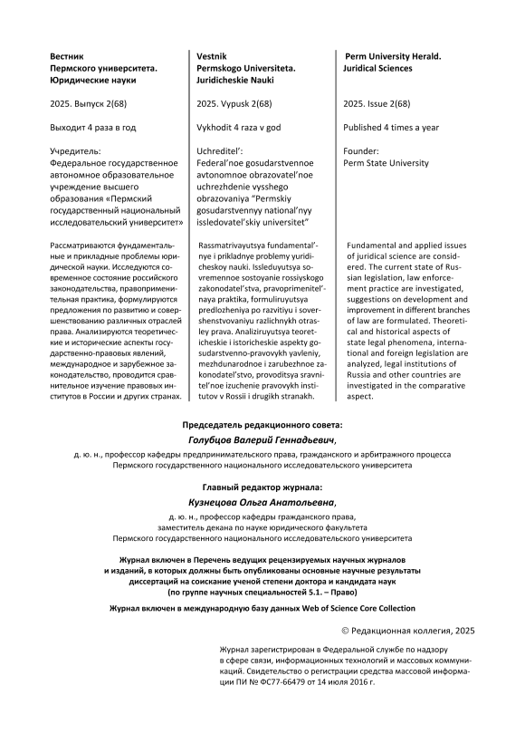 2 (68), 2025 - Вестник Пермского университета. Юридические науки