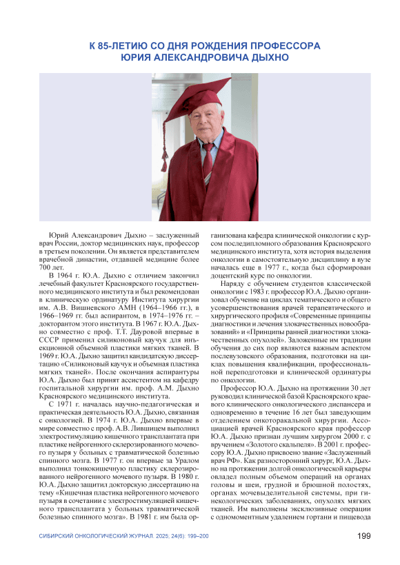 К 85-летию со дня рождения профессора Юрия Александровича Дыхно
