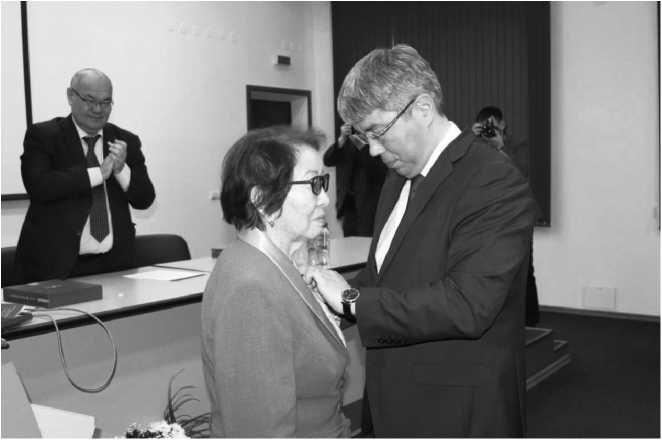 Рис. 11. Глава Республики Бурятия Алексей Самбуевич Цыденов вручает Ж. Г. Базаровой Орден Дружбы. 2023 г.