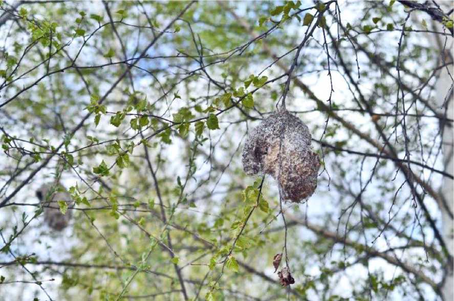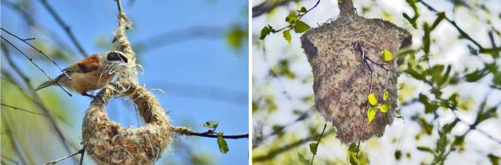 В исследованных нами поселениях в качестве материала для гнезда ремезы использовали растительный пух, в частности тростника, рогоза, ивы, а также бересту (рис. 7), что согласуется с данными, полученными в других регионах.