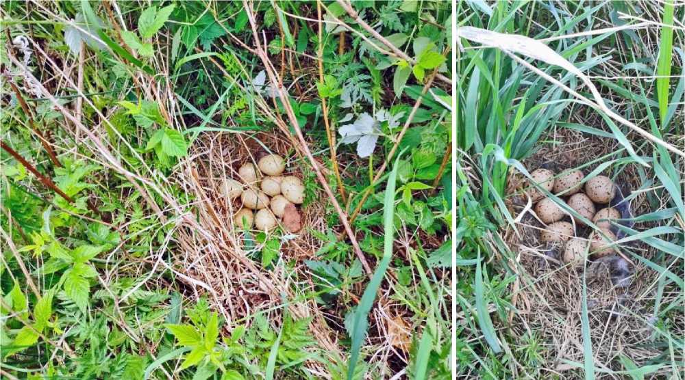 Рис. 3 (слева). Гнездо тетерева Lyrurus tetrix в поднимающемся высокотравье. Остров Малый Леликовский. 06.06.2024. Фото авторов.