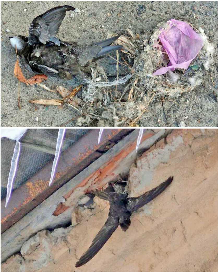 Рис. 10. Гибель молодых чёрных стрижей Apus apus , запутавшихся в гнездовом материале