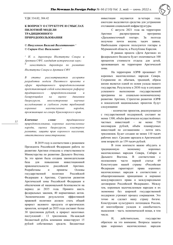 Текст научной статьи К вопросу о структуре и смыслах пилотной модели традиционного природопользования
