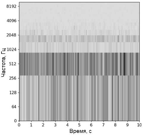 Спектрограмма представляет собой отображение изменения спектральной плотности мощности сигнала в зависимости от времени. Для ее формирования применяется оконное преобразование Фурье, которое декомпозирует сигнал на интервалы с определенными диапазонами частот и времени [12] (рисунок 1).