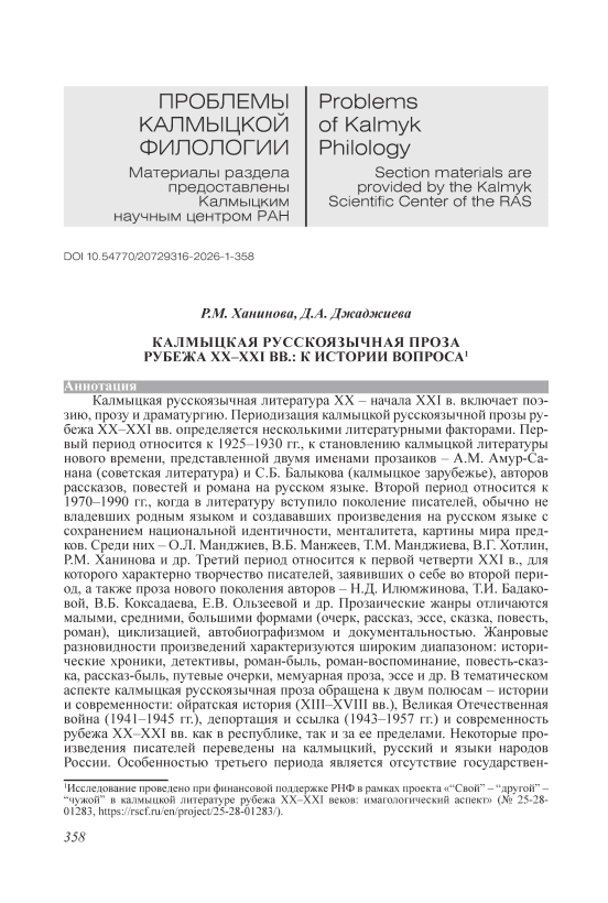 Kalmyk Russian-Language Prose of the Turn of the 20th – 21st Centuries: A History of the Issue