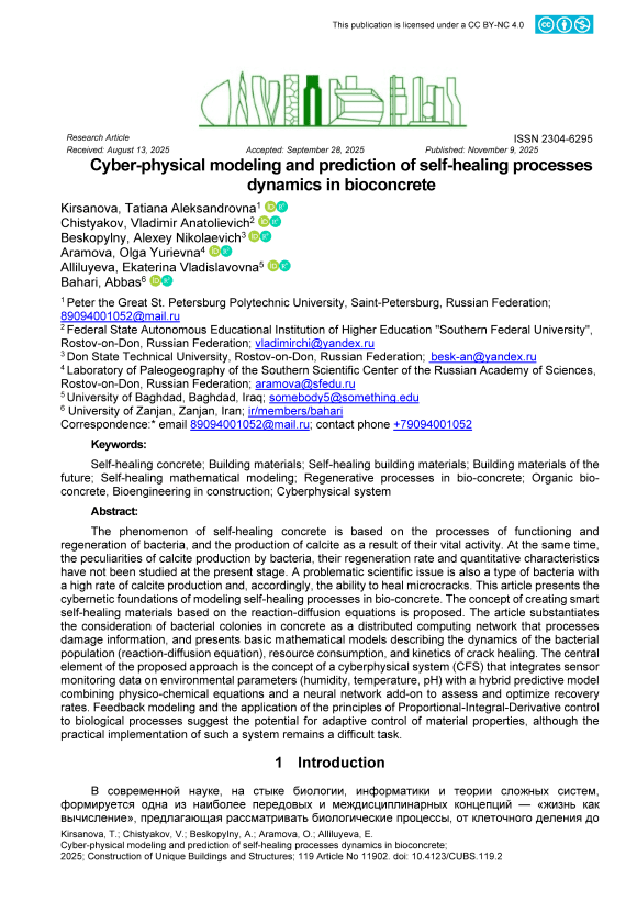 Самовосстанавливающийся бетон, Строительные материалы, Самовосстанавливающиеся строительные материалы, Строительные материалы будущего, Математическое моделирование самовосстановления, Регенеративные процессы в биобетоне, Органический биобетон, Биоинженерия в строительстве, Киберфизическая система