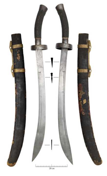 Fig. 1 (photo). Niuweidao saber in scabbard (two sides; inventory numbers GOM-7100-1, GOM-7100-2; Nizhny Novgorod State Historical and Architectural Museum-Reserve)
