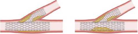 Г. Локальный рестеноз в области бифуркации (рестеноз основной и боковой ветвей) |