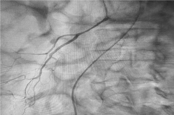 Рис. 1. Ангиография пациента при поступлении с острым мезентериальным тромбозом