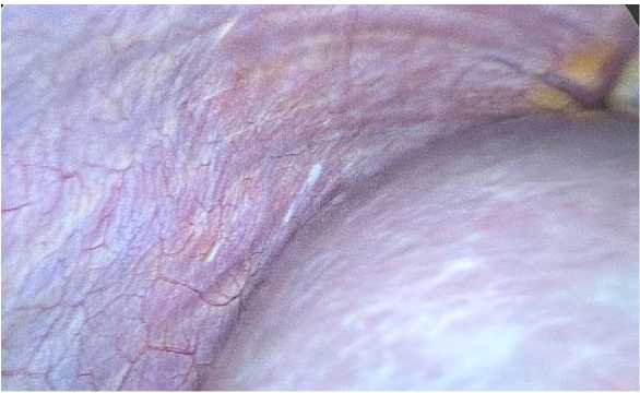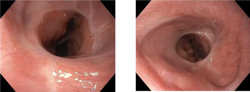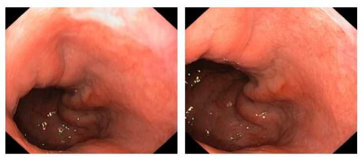 Рис. 10. ФГДС после 6 курсов лечения и выполненной гастрэктомии: 40 недель динамического наблюдения. Эзофагоэнтероанастомоз проходит свободно, слизистая без признаков воспаления