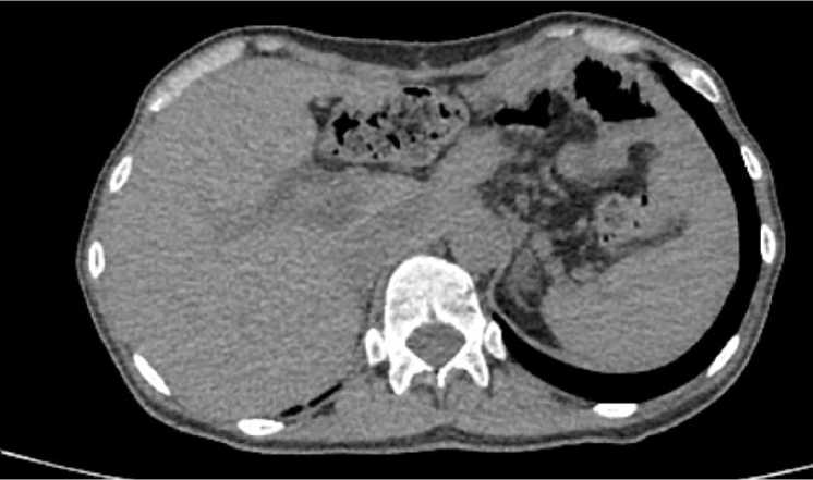 Fig. 9. Computed tomography scan after 6 treatment cycles and gastrectomy. 40 weeks of follow-up