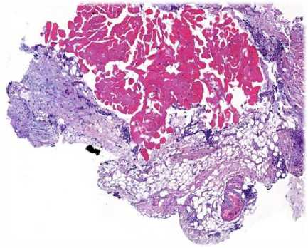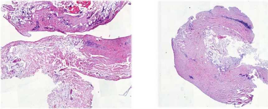 Рис. 7. Гистологические сканы перитонеальных метастазов после 6 курсов лечения (окрашивание гематоксилином и эозином, ув. ×50)