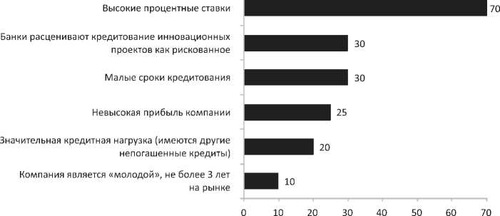 Вопрос, касающийся нехватки финансовых ресурсов, и в особенности низкой активности предприятий по привлечению этих ресурсов, также требует дополнительных пояснений. В частности, лишь 10 % руководителей отметили, что пользуются кредитами на регулярной основе. На рисунке 8 представлены основные трудности, с которыми чаще всего сталкиваются предприятия при получении кредитов.
