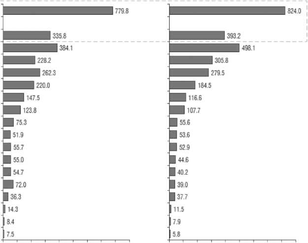 Рисунок 1 – Внутренние затраты организаций на внедрение и использование цифровых технологий и связанных с ним продуктов и услуг по видам экономической деятельности, 2023 гг., млрд., руб.[4, с. 36; 5, с.40]
