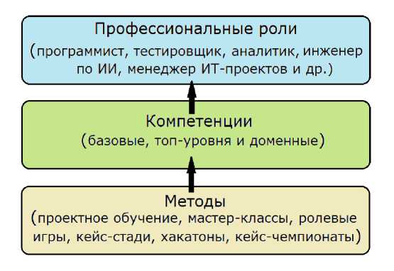 Таким образом, компетентностно-ролевой подход рассматривается как интегративная методологическая конструкция, которая позволяет проектировать образовательный процесс подготовки ИТ-специалистов с учетом как содержательного наполнения (компетенции), так и организационного контекста (роли). В таблице 1 представлено ядро некоторых востребованных в настоящее время на рынке труда компетентностно-ролевых моделей: роли отражают реальные позиции в ИТ-компаниях, компетенции связывают теоретическую базу и практику, а методы обеспечивают реализацию модели в образовательном процессе.