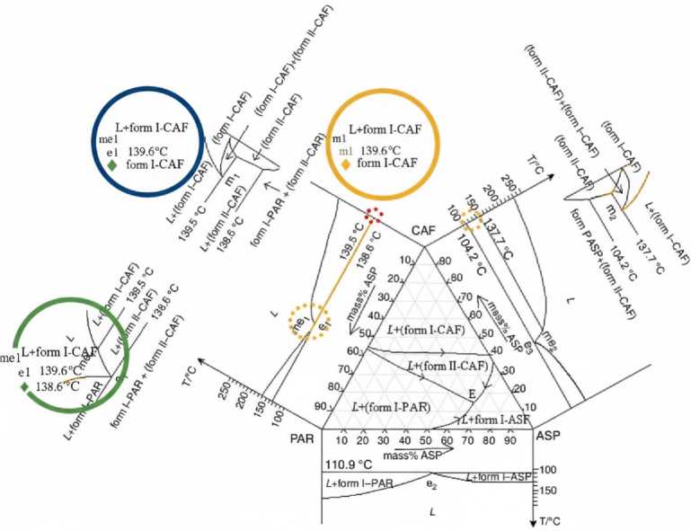 Фазовая диаграмма, прототип, тройная система, аспирин, кофеин, парацетамол, полиморфизм, кататектическая реакция, перитектическая реакция, компьютерное моделирование, цифровой двойник